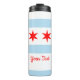 Tumbler termal de personalizable con bandera de la ciudad de Chicago (ciudad más grande de Illinois), bandera de rayas blancas y azules claras con cuatro estrellas rojas