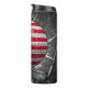 Este elegante ilustracion cuenta con una gran pelota de golf, decorada con audacia con la bandera estadounidense, que incluye estrellas y rayas. Dos clubes de golf rodean la pelota con un fondo dinámico y oscuro con salpicaduras blancas abstractas, creando una imagen poderosa y patriótica con temática deportiva.