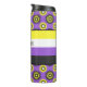 Tumbler térmico con la bandera de orgullo no binaria y un patrón de flor geométrico moderno y sin fisuras en los colores de la bandera de orgullo; diseño de orgullo de entrada amarillo, blanco, púrpura y negro sobre un fondo púrpura con una plantilla de texto editable para su nombre o mensaje