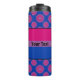 Tumbler térmico con la bandera del orgullo de la bisexualidad y un patrón de flor geométrico moderno y sin fisuras en los colores de la bandera del orgullo; un diseño de orgullo bi rosa, púrpura y azul sobre un fondo azul con una plantilla de texto editable para su nombre o mensaje