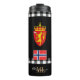 Mug de viajes / Tumbler: tazas de "café" de Noruega patriótica con bandera noruega, escudo de armas y nombre monogramado en estilo de manta de búfalo negro y blanco de moda - amor a mi país, bebidas calientes de oficina, patriotas nacionales / hincha deportivo