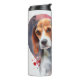 Hermoso, par de beagles, con un fondo de corazón rojo