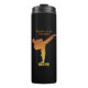 Silhouette japonesa de karate dorado sobre fondo negro con tipografía moderna para personalizar tu nombre.