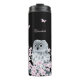 Un lindo búho blanco sobre un árbol rosa de flores de cerezo con un fondo negro. Personalizar con un nombre.