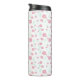 Light and cheerful floral pattern featuring pink flowers with soft yellow centers and airy mint green leaves on a clean white background.