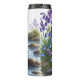 Un suave arroyo serpentea a través de un paisaje exuberante, sus bancos bordeados de arbustos floridos en tonos violeta y azul. El entorno del jardín es tranquilo y pintoresco, con piedras lisas enclavadas entre la vegetación primaveral. Las flores silvestres florecen en abundancia, añadiendo un color vibrante al ambiente tranquilo. Este tranquilo entorno al aire libre invita a una reflexión tranquila y a una apreciación profunda por la belleza de la naturaleza virgen. Con el follaje floreciente y pétalos bailando en la brisa, la escena captura un momento perfecto de crecimiento y armonía entre flora, arroyo y luz solar.