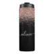 Negro y Rosa Oro - Rosa Beige Brillo Purpurina Metal Bruñido Monograma Nombre Vaso para Bebidas. Esto hace el regalo perfecto para cumpleaños 16, boda, despedida de soltera, aniversario, baby shower o fiesta de soltera para alguien que ama el glamour de lujo y estilos chic.