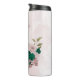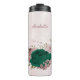 Precioso tumbler térmico de boda romántica con flores esmeralda verdes y rosadas y algunas hojas .