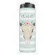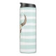 Calavera de vaca florida de moda y moda personalizada en un patrón de rayas de color menta y agua blanca.