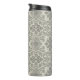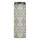 This thermal tumbler features a pattern of floral damask hand-drawn line art in black on beige for a boho look.