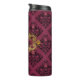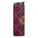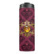Tornillo de damasco de color borgoña y dorado con una piedra gemela monogramada.