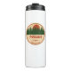 El Bosque Nacional de Pisgah es un bosque nacional en las montañas Apalaches al oeste de Carolina del Norte. Este diseño muestra árboles y líneas de topo con una puesta de sol.