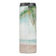 La brisa de la isla pintó la escena de la playa, con olas oceánicas, arena y palmeras, con un hermoso cielo azul verde azulado. Con Fuentes Modernas De Escritura De Tipografía. Playa Tropical De Verano O Diseño De Bodas De Destino - Tumbler Termal De Novia Personalizado! ~ Revisa mi tienda para ver toda la suite boda para este diseño!