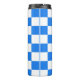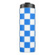 This thermal tumbler features a classic bright blue and white checkerboard pattern.
