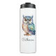 Lleva la sabiduría del bosque contigo con este termo de vidrio con diseño etéreo de Búho Cuerniblanco. Este llamativo diseño presenta un cautivador retrato de búho reinterpretado en una paleta de turquesa de pavo real, violeta suave y ámbar dorado, en un estilo de acuarela. La ilustración da a las plumas del búho un aspecto iridiscente falso como si la luz de la luna brillara en sus alas. Este termo de viaje aislado mantiene tu té o café favorito a la temperatura adecuada mientras estás jardinería o disfrutando de un paseo matutino. Personalízalo con tu nombre en una tipografía sofisticada para un toque personalizado. Un regalo hermoso y práctico para observadores de aves, búhos nocturnos y todos aquellos que aprecian la magia del mundo natural.