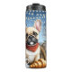 Esta gráfica deliciosa representa a un adorable cachorro de Bulldog francés sentado en una mesa de café al aire libre. Lleva una bandana roja y mira dulcemente, con una taza de café y un cruasán delante. El fondo muestra una encantadora escena callejera parisina por la noche, adornada con luces de cuerda y flores, que evocan un ambiente cálido y acogedor.