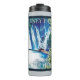 Una pintura digital de una cascada que se encuentra en California, Burney Falls. Una mariposa marrón y blanca se extiende sobre una rama que se extiende a través de la vista panorámica. Derechos reservados ©2023 Kimberly J Tilley.