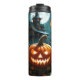 Calabaza malvada con el castillo negro bajo la luz de la luna.