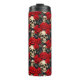 Perfecto para el hogar Gótico, este vaso termal está cubierto de cráneos rodeados de rosas rojos y negros. Hermoso, oscuro y romántico diseño.
