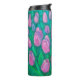 Tumbler termal con pintura floral colorida, campo verde esmeralda lleno de hermosas flores primaverales. Los tulipanes rosados simbolizan un sentimiento de felicidad, autoconfianza y positividad. Esta obra de arte se adapta perfectamente a los saludos de Pascua o de la mujer, o como regalos de cumpleaños para chicas y mujeres. Paleta de colores: Esmeralda y Mint Green, rosa, Lavanda. © Clipso-Callipso / Julia Khoroshikh www.juliakhoroshikh.art #tulipsart #pinktulips#tulipainting #springflowers #floralart #floralprint #floralpillows #contemporaryfloral #wildflowers #floralart #summerblossom #drinkware #springgifts
