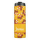 Añade tu nombre en este bastón de caramelo envuelto con el arco rojo en el diseño de patrones de fondo naranja.
