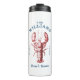 El tumbler termal del Coastal Lobster Beach House cuenta con un fondo blanco con un estilo de acuarela rojo estilo bogavante Maine. Personalízalo con el nombre de tu familia y la fecha establecida en una fuente clásica azul marino. Perfecto para casas de playa de verano, cabañas frente al mar y vacaciones familiares.