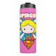Echa un vistazo a la Chibi Supergirl parada frente a un corazón de estallido azul y blanco, sobre su S-Shield con el nombre por encima.