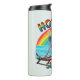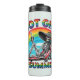 Un ilustracion divertido y atrevido de un esqueleto relajado tomando un cóctel en una tumbona de playa, con un arco iris retro y un telón de fondo de playa. Con la audaz frase "verano caliente Chica", este tumbler termal combina los albornoces de la playa con humor gótico lúdico y colores nostálgicos inspirados en los años 70. Perfecto para los amantes del verano con un lado peculiar, ideal para los amantes del humor negro, la estética retro y las aventuras costeras.