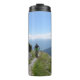 Un ciclista solitario abordando el terreno de Portjoch sin duda impulsado por el impresionante paisaje. Gran fotografía para añadir una cita inspiradora o un mensaje de aliento para cumplir un objetivo.