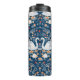 Termo Cisnes, peces, flores de fondo azul. Decorativo