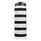 Botella de agua a rayas blancas y negras (tambor) con la frase de baile repetitivo "EAT SLEEP DANCE REPEAT".