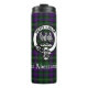 Clan escocés Abercrombie tartan fondo con insignia de escudo de clan y superposición de texto