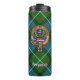 Insignia escudo del clan Ferguson rodeada por una correa y hebilla sobre el fondo del tartán. Texto personalizado.