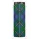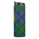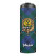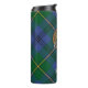 Insignia escudo Clan Johnston rodeada de una correa y hebilla sobre el fondo del tartán. Texto personalizado.