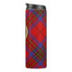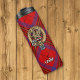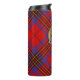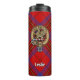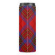 El clan Leslie escudo badge está rodeado por una correa y hebilla sobre el fondo rojo tartán. Texto personalizado.
