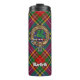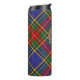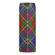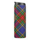 Insignia escudo del clan MacBeth rodeada por una correa y hebilla sobre fondo tartán. Texto personalizado.