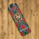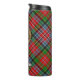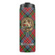 Insignia escudo del clan MacPherson rodeada por una correa y hebilla sobre el fondo del tartán. Texto personalizado.