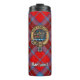 Insignia escudo del clan MacTavish rodeada por una correa y hebilla sobre el fondo del tartán. Texto personalizado.