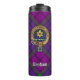Insignia de escudo de Clan Wardlaw rodeada por una correa y hebilla sobre el fondo tartán. Texto personalizado.