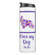 Patrón abstracto digital de la silueta de perro mascota de Cocker español morado, rosa, amarillo y azul. Este tumbler térmico seguramente pondrá una sonrisa en cualquier cara de los amantes del perro. Además, es ecológica, así que puede conservarla por años. Cambie ‘Amo a mi perro’/ ‘Nombre’ por cualquier texto que le guste a ambos lados de la botella.