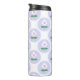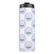 Tumbler termal escolar morado de adolescentes con flores de margarita ilustrado por el diseñador internacional Kathrin Legg