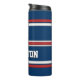La camiseta roja y azul del equipo blanco rayas diseño deportivo con texto de plantilla para añadir tu propio número de equipo y nombre del jugador.