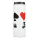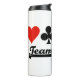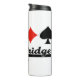 Advocar puente y doble puente con este tumbler térmico con los cuatro trajes de cartas, junto con el dicho "puente de equipo". No hay necesidad de jugar en equipos suizos para disfrutar de esta actitud de puente, el tumbler termal, que es perfecto para mostrar tu entusiasmo por el juego en la mesa de bridge.
