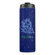 Tumbler en el signo zodiaco de Aquarius en azul plateado suave, dominado por las estrellas de la constelación, contra un cielo estrellado de fondo azul oscuro