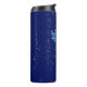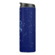 Tumbler en el signo zodiaco de Tauro en azul plateado suave, cubierto con las estrellas de la constelación, contra un cielo estrellado de fondo azul oscuro