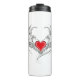 Corazón rojo pintado de forma artística con alas de ángel gris, decorado con un contorno suave negro.