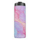 Diseño de tinta alcohólica abstracta de ensueño con olas de tonos rosas, púrpura y azul con una vena de oro delicada y burbujas dispersas. Esta obra de arte etérea evoca el suave y caprichoso sentimiento de las nubes de los caramelos de algodón y los cielos mágicos, perfecto para añadir un toque de asombro. Personaliza con un nombre.