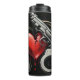 Este vintage ilustracion blanco y negro muestra una esposas y una pistola junto a un corazón rojo sangrante, colocado sobre un fondo oscuro con acentos de luz suave. Los toques dorados agregan elegancia, capturando los intensos temas del amor y el conflicto. "Imagen original generada por Meta AI. La IA generó obras de arte. Con licencia CC BY-SA 4.0.