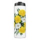 Tumbler en un ramo de crisantemos amarillos, margaritas blancas y hojas verdes