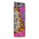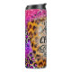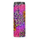 Este gráfico audaz muestra la poderosa cita "Puedo hacer todas las cosas a través de CRISTO que me fortalece" de "FILIPINOS 4:13". El texto se muestra de forma destacada en escritura negra y fuentes sans-serif blancas. Un fondo vibrante de estampado de leopardo, salpicaduras de fucsia y tonos morados crea un diseño cristiano enérgico y fortalecedor